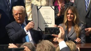 El Presidente Donald J. Trump, junto a su esposa Melania Trump firmaron hoy la ley que prohíbe distribuir o publicar imágenes o videos personales en cualquier plataforma, inclusive entre entes privados.